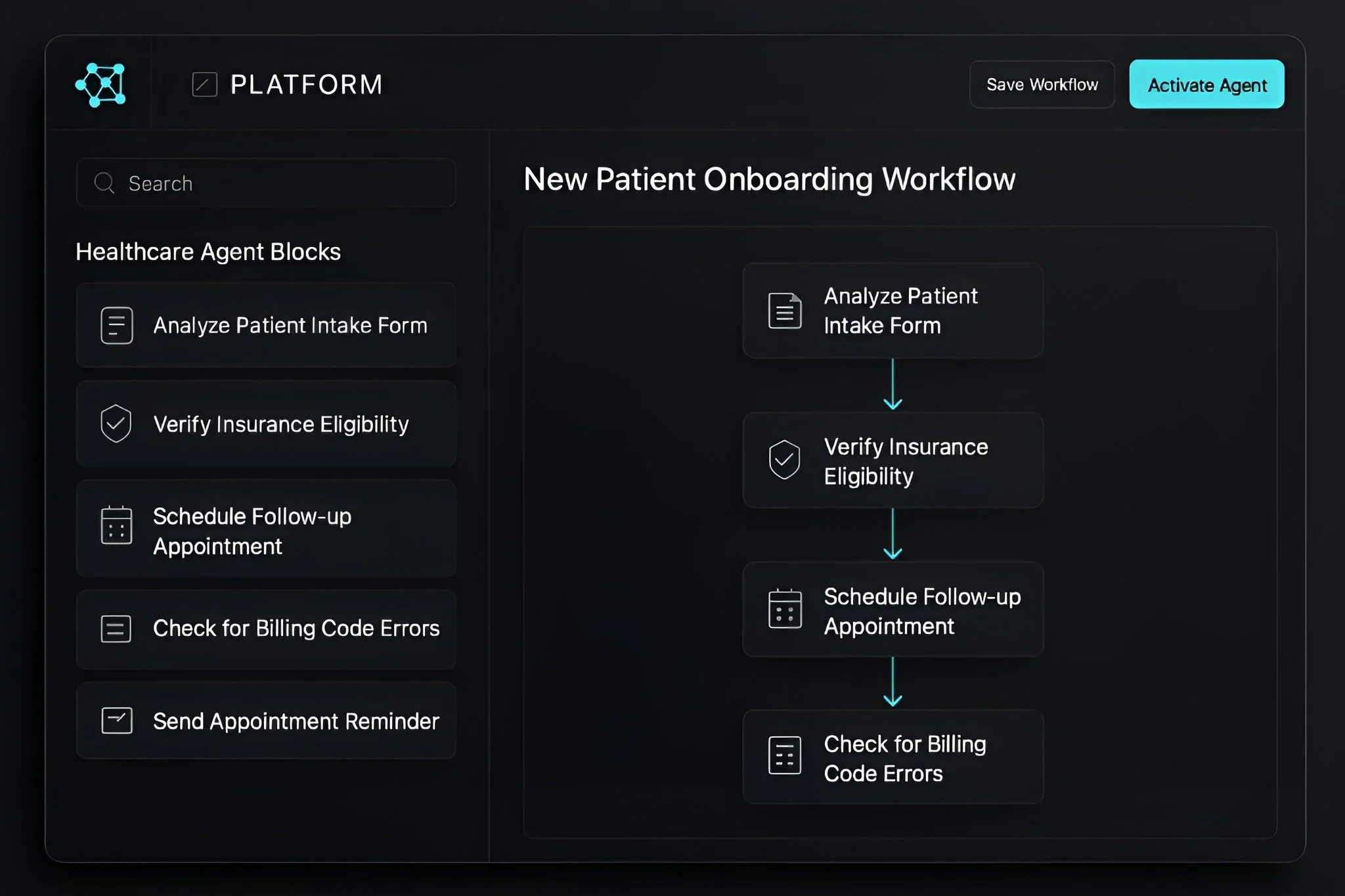 Visually build powerful, industry-specific AI agents in minutes. No code required.